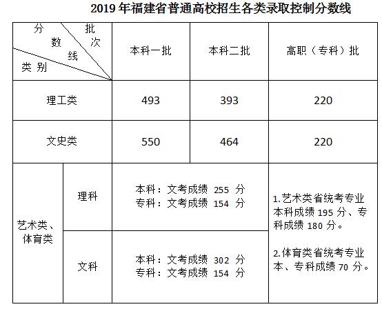 24日上午,福建省高等学校招生委员会召开2019年第二次全体会议,研究确定今年我省高考切线方案,部署高招录取工作。经会议研究决定,2019年福建省普通高校招生各科类各批次录取控制分数线具体如下: