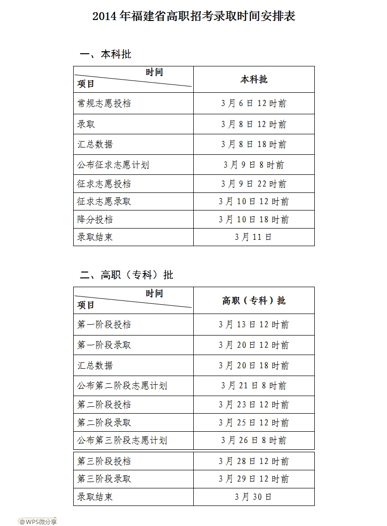 2014年高职招考录取时间安排表