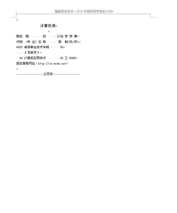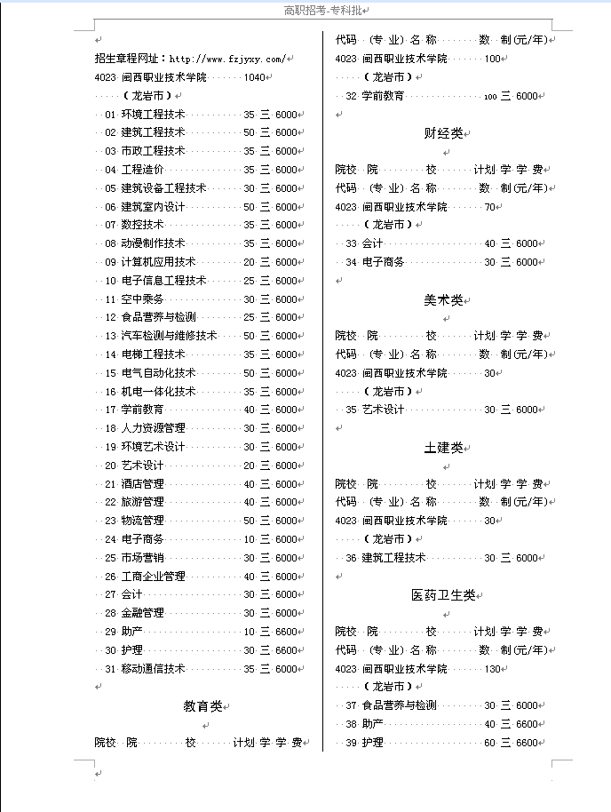 2016年高职招考院校代码及专业代码