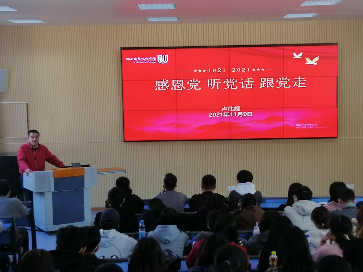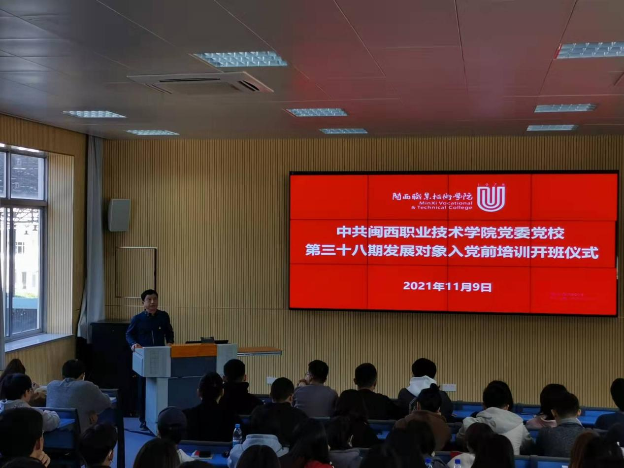 2021年11月9日,第三十八期发展对象入党前培训在望云楼学术报告厅一顺利开班,学校党委党校校长、党委副书记李贞鑫同志作动员讲话,明确了培训目的。校党委书记卢伟耀同志亲自上《感党恩、听党话、跟党走》的党课,要求全体学员继续弘扬光荣传统、赓续红色血脉,珍惜幸福当下,感恩伟大祖国,以坚定的理想信念,筑牢信仰之基,在工作学习生活实践中践行初心使命,坚定前进步伐。