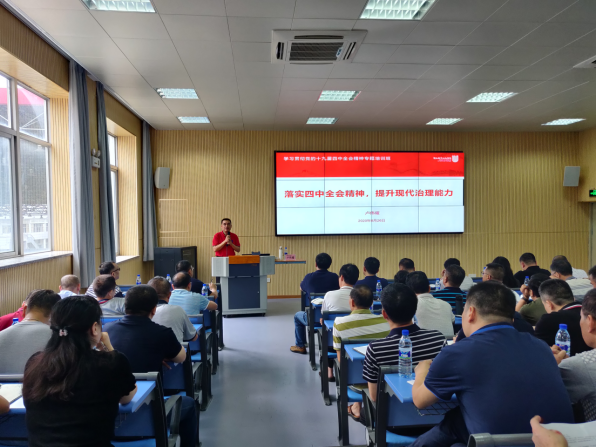 卢伟耀书记作题为《落实四中全会精神,提升现代治理能力》的专题报告。他指出,学习贯彻习近平总书记重要讲话精神和党的十九届四中全会精神是当前和今后一个时期最重要的政治任务。作为领导干部,一定要做尊崇制度、执行制度、维护制度的表率,带头坚定制度自信、增强制度意识、维护制度权威、发挥制度效能,引导全校师生在制度创新和治理实践中展现更大作为,把会议精神切切实实转化为全方位推动学校高质量发展超越的强大动力。他还强调要明确办学目标,以全会精神为指导,全力推动高水平高职院校建设;要坚持对标反思,对标对表查摆不足,刀刃向内找准差距;要革新思想观念,进一步加强学校干部队伍自身建设,树牢政治意识、强化闽大观、强化学习观念、强化能力意识、强化制度意识、强化质量意识、强化党管意识;要强化落细落实,紧扣重点任务,多措并举全方位推动学校高质量发展超越。