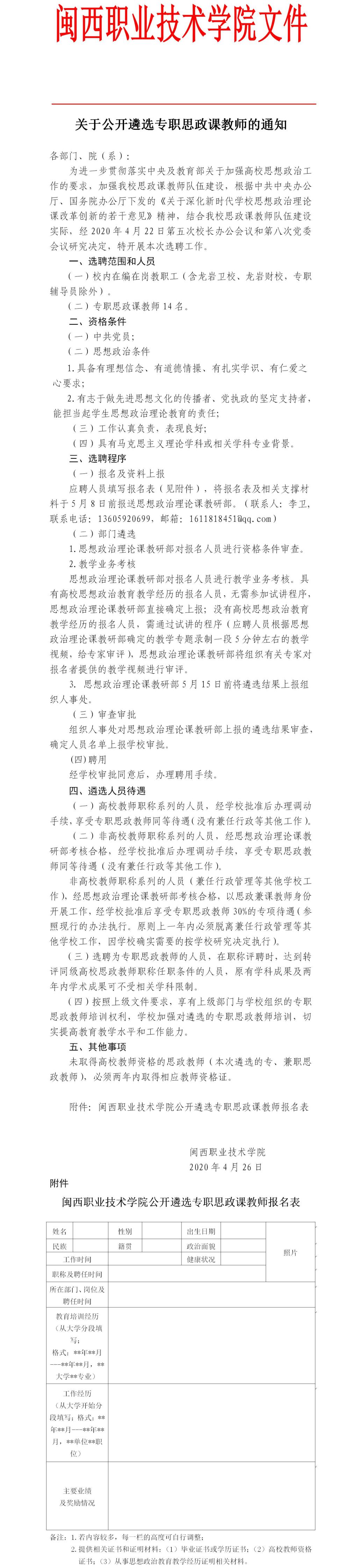 关于公开遴选专职思政课教师的通知