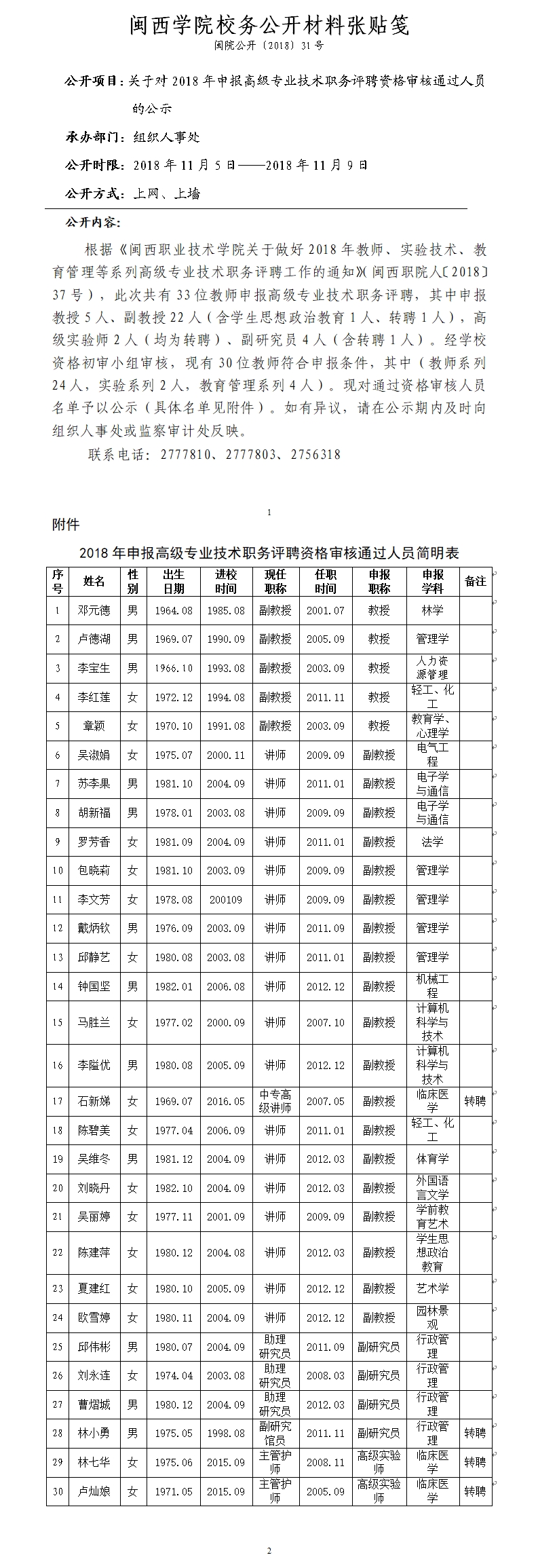 2018年申报高级专业技术职务评聘资格审核通过人员的公示