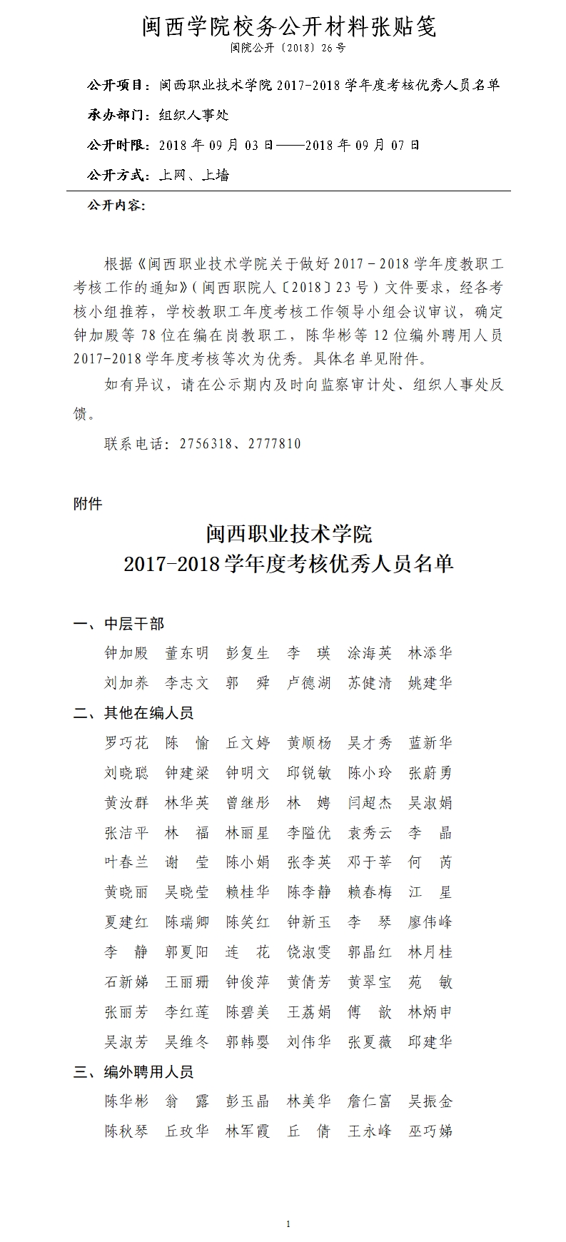 关于2017-2018学年度考核优秀人员名单的公示