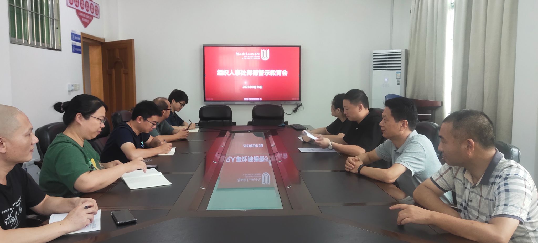 9月15日上午,组织人事处召开师德警示教育会,专题学习《教育部公开曝光第十三批7起违反教师职业行为十项准则典型案例》。会议由组织人事处陈驰处长主持,组织人事处全体人员参会。