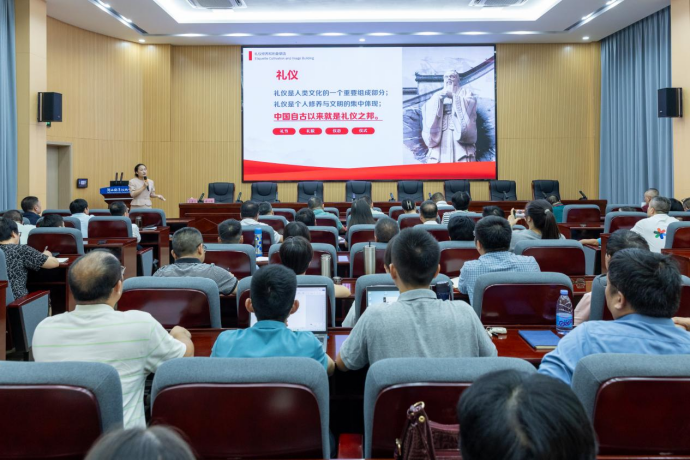 8月22日上午,学校邀请中共龙岩市委党校胡小周老师为本次培训作题为《公职人员的礼仪修养和形象塑造》的讲座。胡老师生动地为参训干部讲解不同公务场合中应注意的礼仪和自身形象塑造的关键,丰富的场景模拟和案例讲解让参训干部把对礼仪的刻板印象转化为具体场景中要注意的具体细节和举动,在座的每一位同志都受益匪浅。