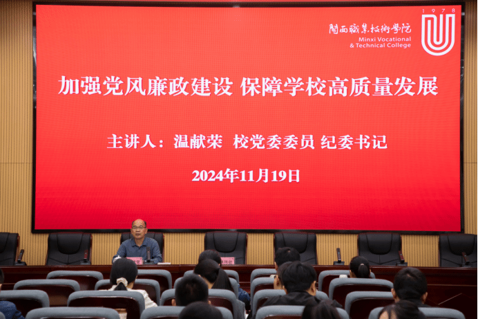 校纪委温献荣书记以《加强党风廉政建设,保障学校高质量发展》为题,强调党务干部要时刻牢记“两个永远在路上”,要以实际行动共同营造风清气正的校园政治生态,引领推进高质量党风廉政建设。