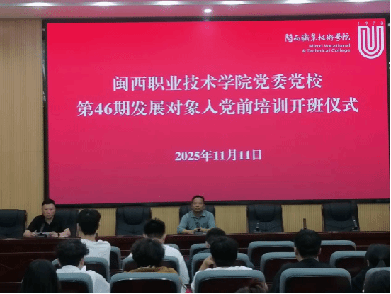 2025年11月11日下午,在协成楼第一会议室,学校党委党校举办第46期发展对象入党前培训班,本次培训共71位学员参加。党校副校长组织人事处陈驰处长作开班动员讲话,强调本期培训是深入学习贯彻党的二十大精神的关键举措,激励学员们以饱满的热情投入学习,以实际行动接受党组织的考验。