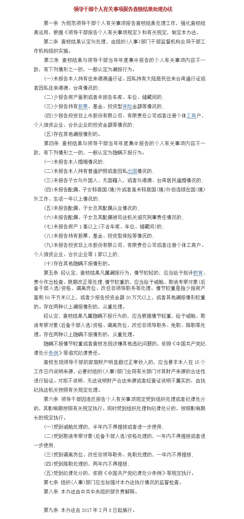 领导干部个人有关事项报告查核结果处理办法