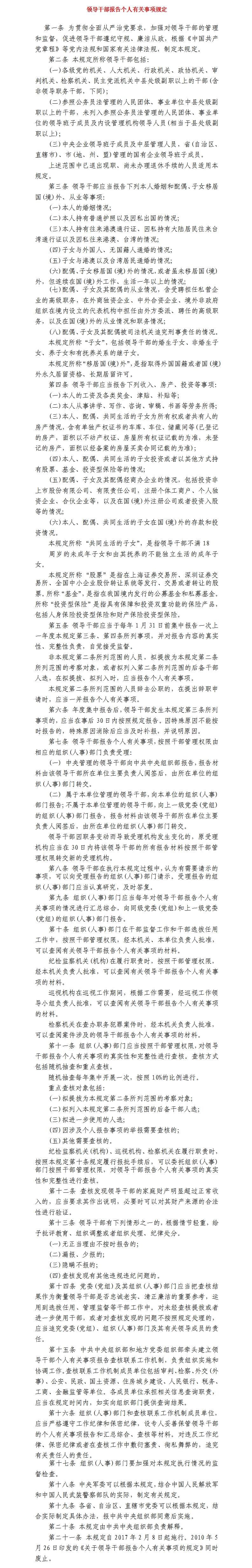 领导干部报告个人有关事项规定