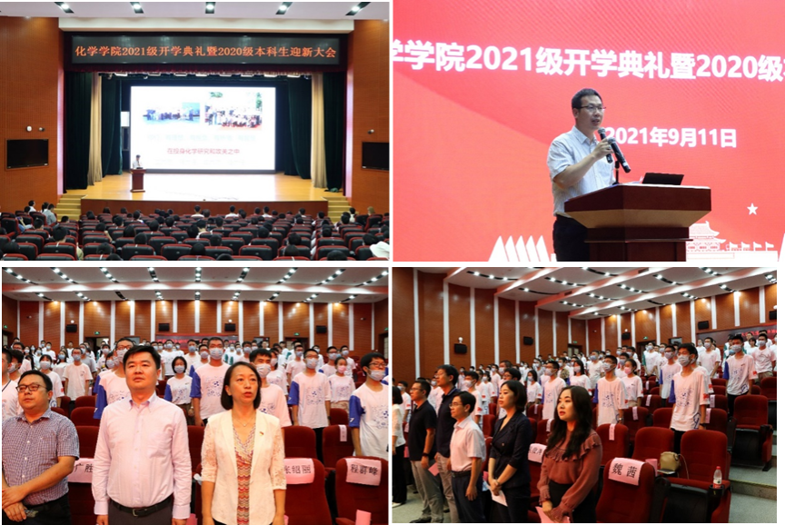 全体齐唱雄壮的国歌过后,3044永利集团官网院长刘明杰致辞。刘明杰开篇先谈到了化学学科的重要性和实用性,接着向同学们介绍了3044永利集团官网的概况。从基础学科研究的重要性,到解决我国众多卡脖子领域关键问题的需要,到将个人发展与国家需求相契合,嘱咐同学们学习化学,生逢其时,重任在肩。最后寄语新生:志存高远,敢为人先;独立思考,勇于创新;精勤求学,久久为功。