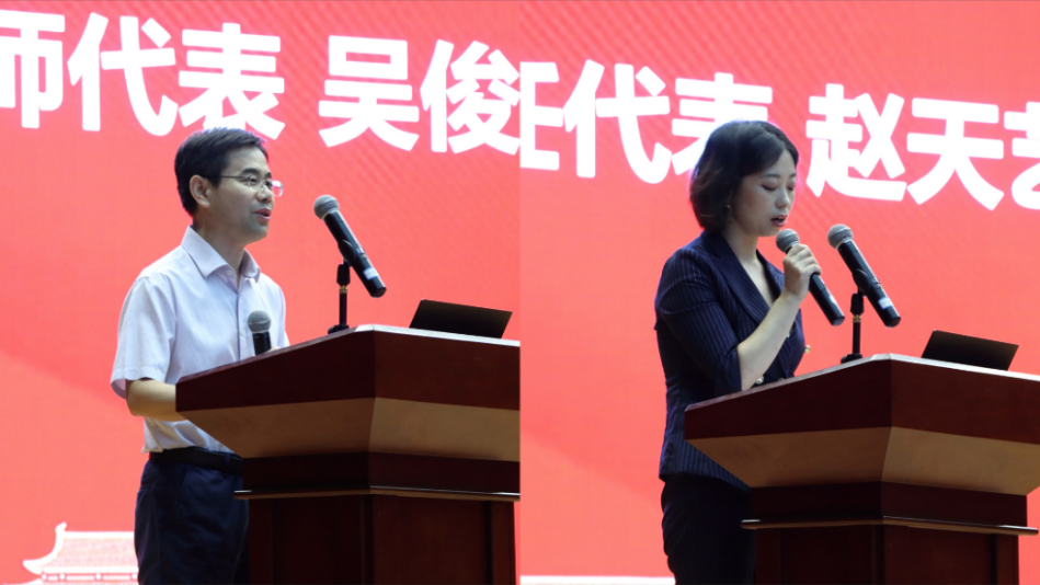 研究生导师代表吴俊涛和本科生班主任代表赵天艺以自身的亲身经历鼓励同学们践行 “德才兼备,知行合一”的校训,不断精进学业,充实自己的学识,同时不忘培养自己的兴趣爱好,在北航拥有一个丰富多彩的生活。