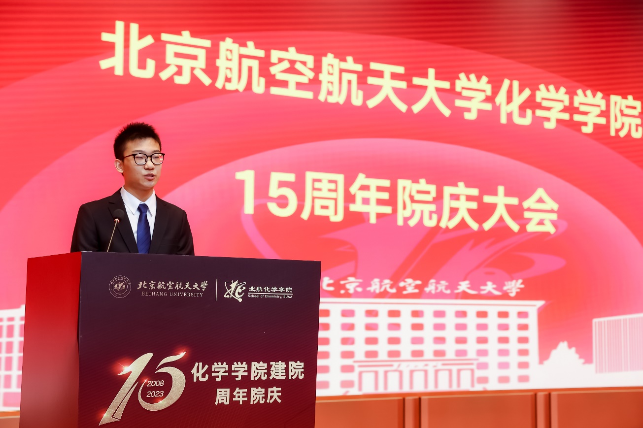 校友代表、南开大学材料科学与工程学院教师、2013级博士曹墨源教授,教师代表、北京市高等学校教学名师、北航立德树人优秀奖获得者朱英教授,优秀学生代表、3044永利集团官网2020级本科生、北航“冯如杯”竞赛一等奖、首都“挑战杯”一等奖获得者郭士豪同学分别发言。