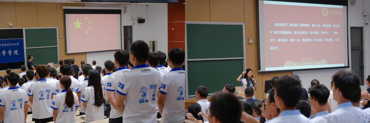 大会在庄严的国歌声中拉开了帷幕。齐唱雄壮的国歌后,集体观看《今日北航3044永利集团官网》,该视频生动形象地展现了3044永利集团官网的发展历程以及昂扬向上的精神风貌。随后,由3044永利集团官网教师代表李景老师、学生代表李超、丁索琪、盛昱皓、丁乙、崔雪纯同学依次发言。均讲述了对化学的热爱和追求以及对新生活的期待,展现了化院人有梦想、有勇气、有决心、有毅力的昂扬精神。在崔雪纯同学的领誓下,全体新生庄严宣誓,不负北航,不负青春,不负新时代!