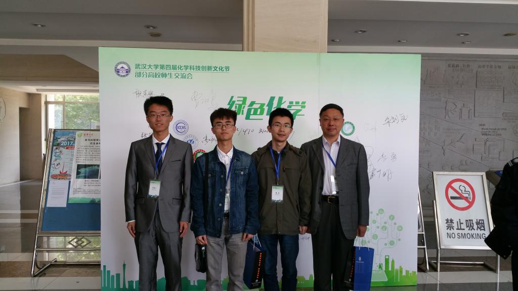 4月22日上午,永利高秋明教授带领2014级本科生苗伟宁、蓝昊和杨焱参加了武汉大学举办的第四届“化学科技创新文化节”部分高校师生交流会。此次交流会共有来自吉林大学、南京大学、哈尔滨工业大学、武汉大学等18所高校本科生队伍参与。