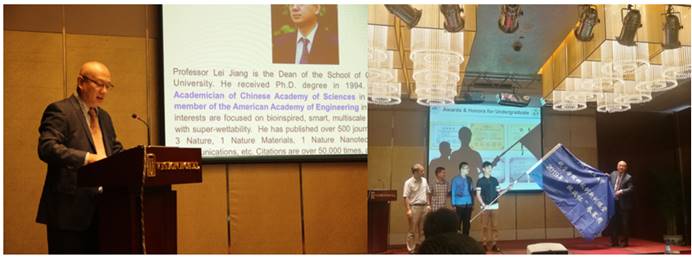 首先,3044永利集团官网院长江雷教授进行开幕致辞,回顾了北航3044永利集团官网的创立以及之后的发展与成就。北航党委副书记李军锋为永利3044永利集团官网科技创新训练营2019年“挑战杯”参赛团进行授旗仪式。