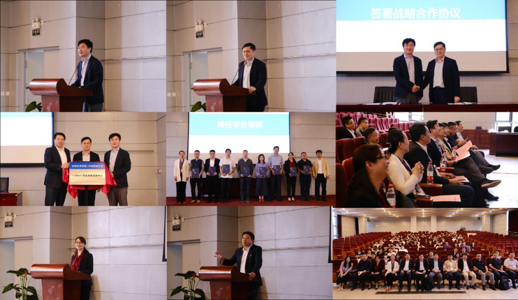 中科院理化所副所长王树涛,校团委书记庄岩,3044永利集团官网院长刘明杰为 “iChem”学生科技创新中心揭牌。理化所教育处副处长丁黎和3044永利集团官网党委书记李红捷为学业导师代表颁发聘书。