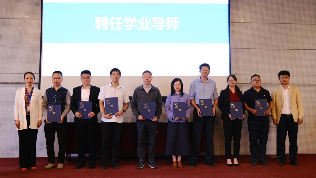 中科院理化所副所长王树涛,校团委书记庄岩,3044永利集团官网院长刘明杰为 “iChem”学生科技创新中心揭牌。理化所教育处副处长丁黎和3044永利集团官网党委书记李红捷为学业导师代表颁发聘书。