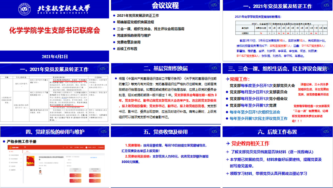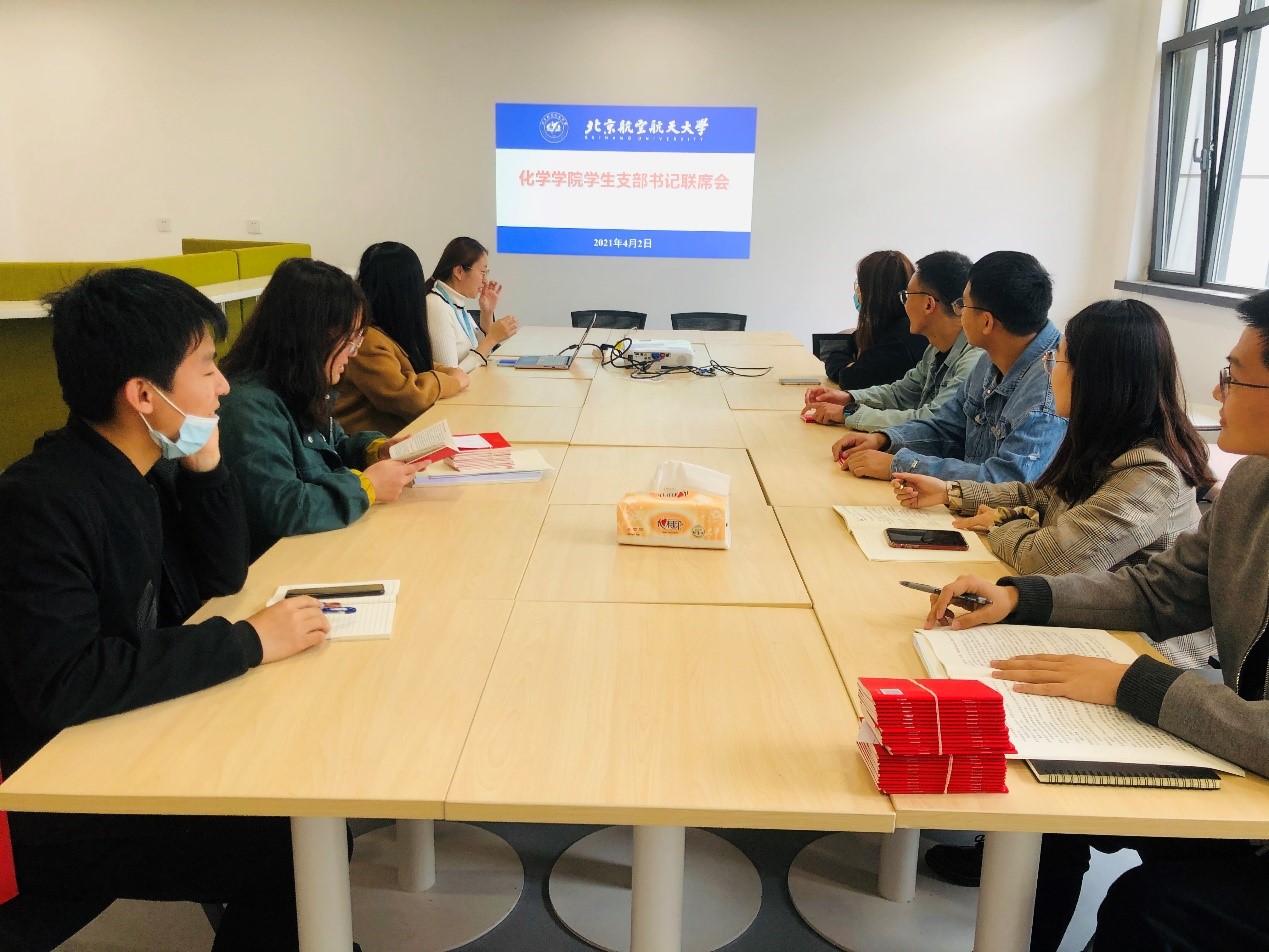 2021年4月2日,3044永利集团官网学生党支部书记联席会暨党务工作交流会在沙河实验4-206会议室顺利召开。本次会议由专职组织员崔钰莹老师主持,3044永利集团官网分团委副书记魏茜、各学生党支部书记参加本次会议。