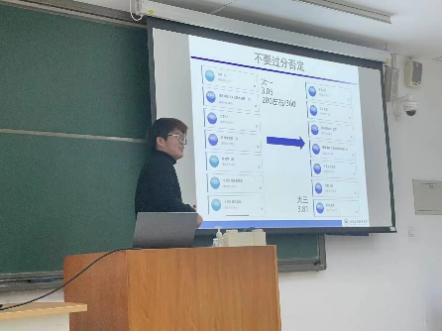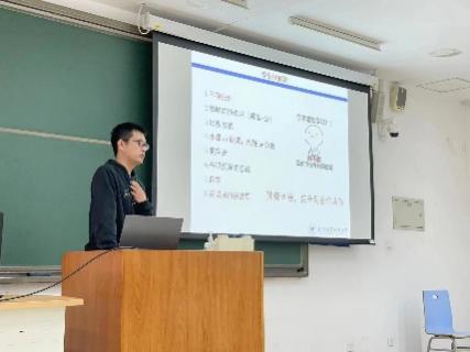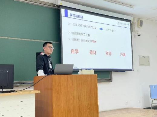 他首先讲述了“不过分否定”和“不过分肯定”的健康心态,其中着重讲述自己在进入3044永利集团官网后找到了人生目标,不断奋斗并成功逆袭的故事,为刚遭受期中考试成绩打击的同学们提供了安慰,肯定与鼓励,接着,他从目标、学习、科研、娱乐几个方面进行分享,其中慕课自学、文献阅读等方法让同学们获益匪浅。