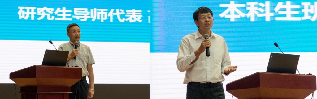 紧接着,研究生导师代表高秋明教授和本科生班主任代表赵勇教授为同学们致辞,告诉大家从中学生变成大学生以及大学生变成研究生,不仅是身份的转变,更重要的是在新的阶段思维的转变,对自己要逐渐有清醒的认知,对未来要有清晰明确的规划,也表达了对化院学子的殷切期望。
