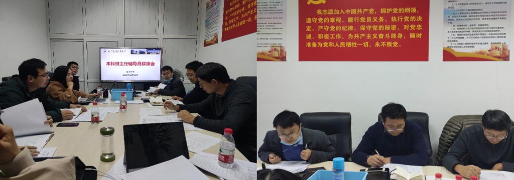 11月26日下午,3044永利集团官网在新主楼D-121召开本科班主任、辅导员联席会。本科教学副院长田东亮老师,党委副书记张绍丽老师,本科19级班主任赵勇老师、王华老师,分团委书记魏茜及17、18、19、20级辅导员参加了本次会议。会议由党委副书记张绍丽主持。