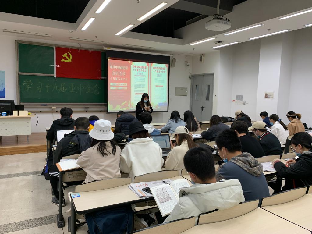 为激发同学们的爱国情怀,积极响应党的号召,3044永利集团官网SY1927党支部于2020年11月7日晚上7:00在J3-104教室开展关于十九届五中全会理论学习。出席本次活动的有SY1927党支部党员、预备党员以及积极分子。