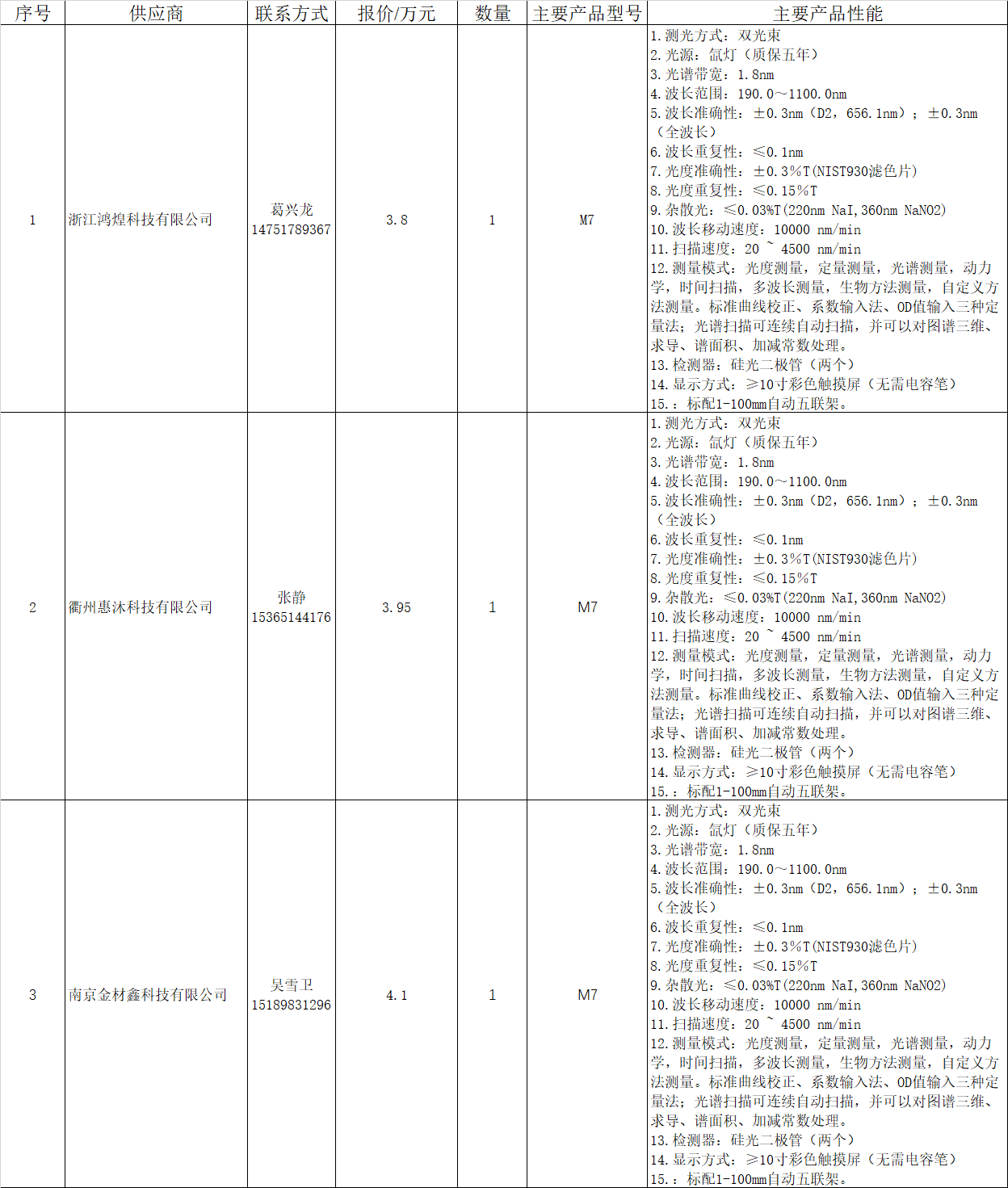 3044永利集团官网紫外可见分光光度计设备采购项目由项目负责人通过比价方式采购,现将比价过程及结果公示如下: